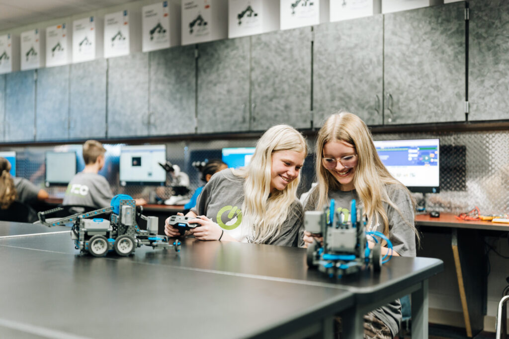 Sixth graders pick up welding torches in virtual reality. Students learn how robots respond to code they write themselves. They see how healthcare professionals use technology, how machinists measure with precision, and how IT technicians develop and maintain networks.