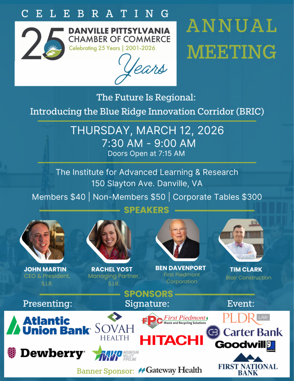 The Danville Pittsylvania Chamber of Commerce invites you to our 2026 Annual Meeting — a forward-focused conversation about the next chapter of economic growth in our region.